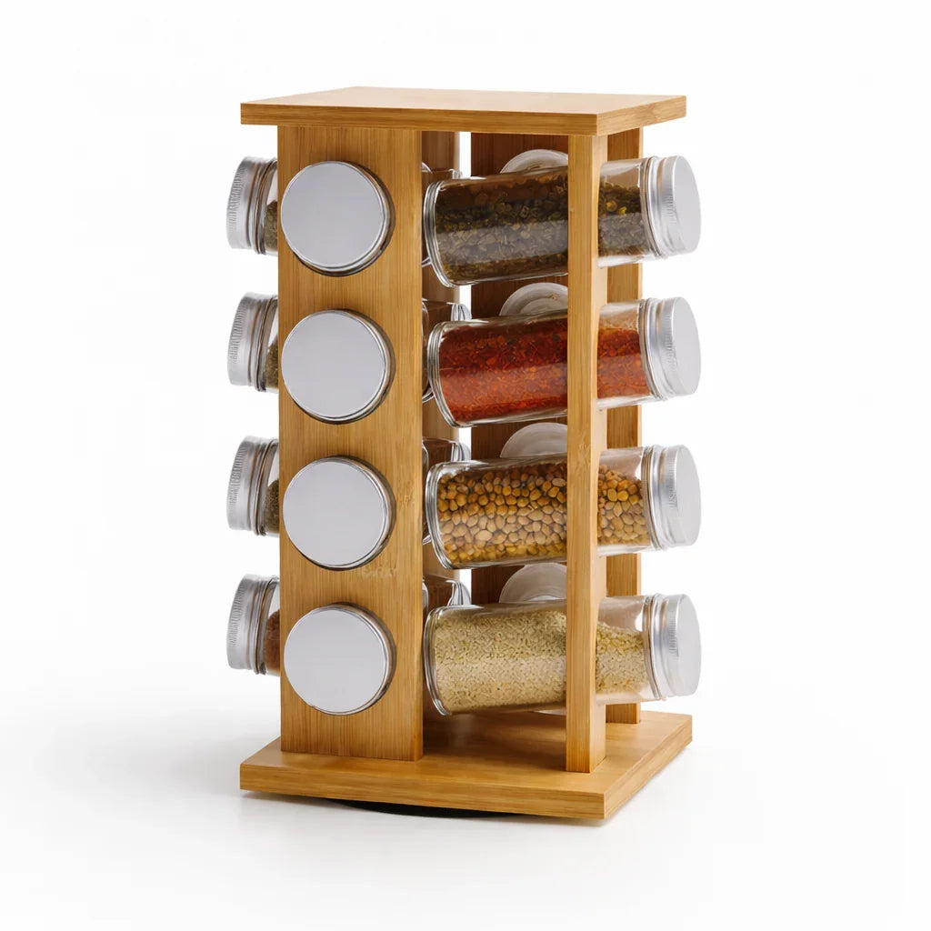 The Rotating Bamboo Spice Rack combines natural materials with smart design, keeping your seasonings organized, visible, and within easy reach.